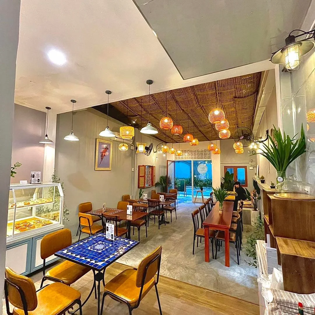 A chic French breakfast and brunch café spot, Café Marcel is a popular weekend go-to in Thao Dien - Saigon’s expat enclave. Here, simplicity is key with soft white walls, floor-to-ceiling windows with natural sunlight filtering through, earthy wood tones and turquoise blue accents for a playful contrast.