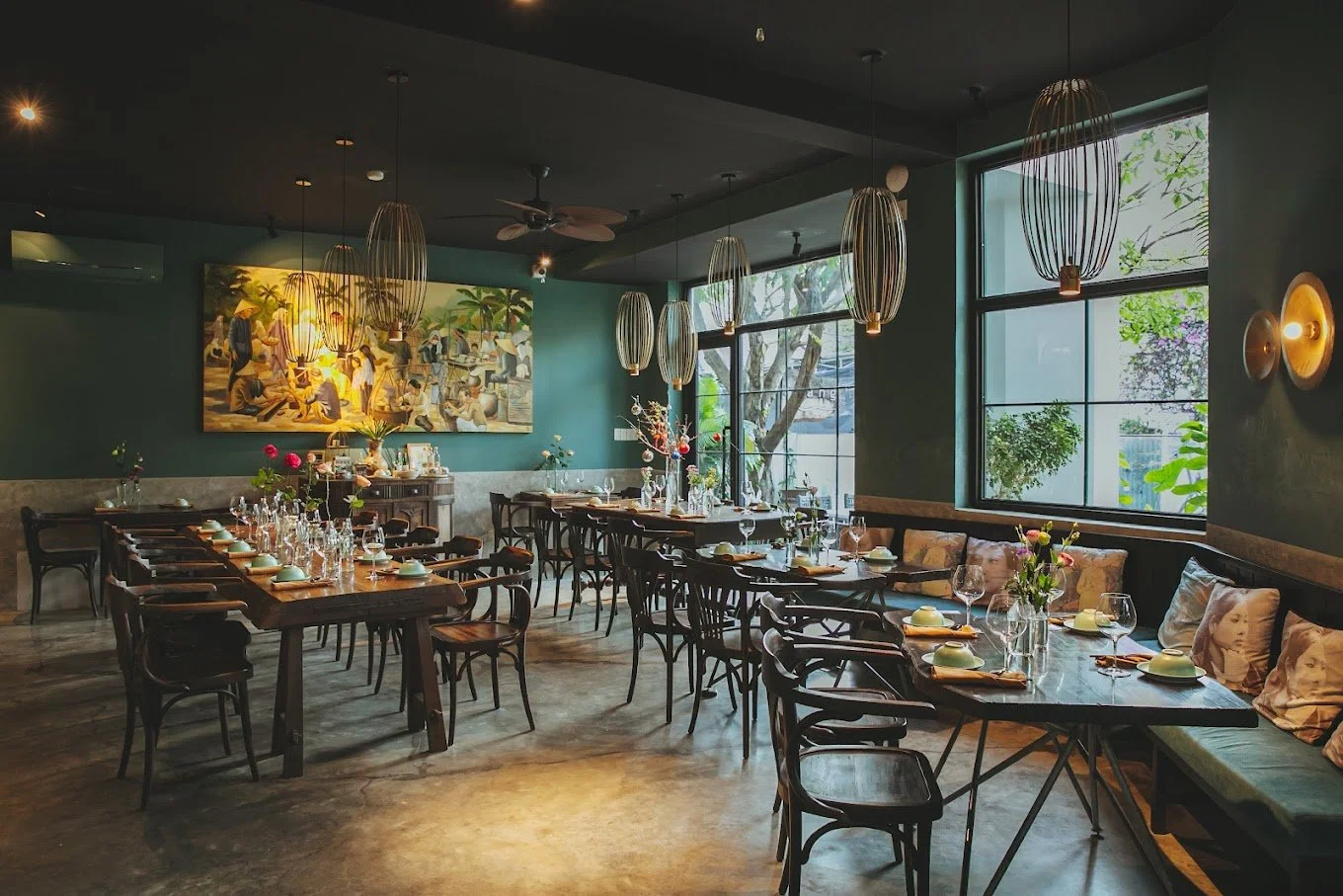 Step into a tasteful blend of history and culinary excellence at Quan Bui restaurant. The restaurateurs have skillfully restored a derelict Indochine, transforming it into an indoor-outdoor sanctuary that harmoniously fuses historic elements, such as 1950s artwork, with contemporary touches. Beyond its graceful interiors, which are certainly not a rarity in Saigon, Quan Bui distinguishes itself through remarkable cuisine. Its open kitchen not only emphasizes food quality and cleanliness but also showcases an array of dishes that impress with intense flavors without being heavy. The signature roasted chicken's skin, fish paste, and sesame dish are a testament to this - deliciously smoky and tender. Quan Bui keeps its food presentation simple, focusing on flavor rather than flair. A wide selection of good wine at a reasonable price complements the culinary offerings. Accommodating groups, the restaurant offers both buffet service upon reservation and an à la carte dining menu. Whether you choose to dine indoors or in the charming garden, surrounded by trees and wood decor, Quan Bui ensures a delightful dining experience.