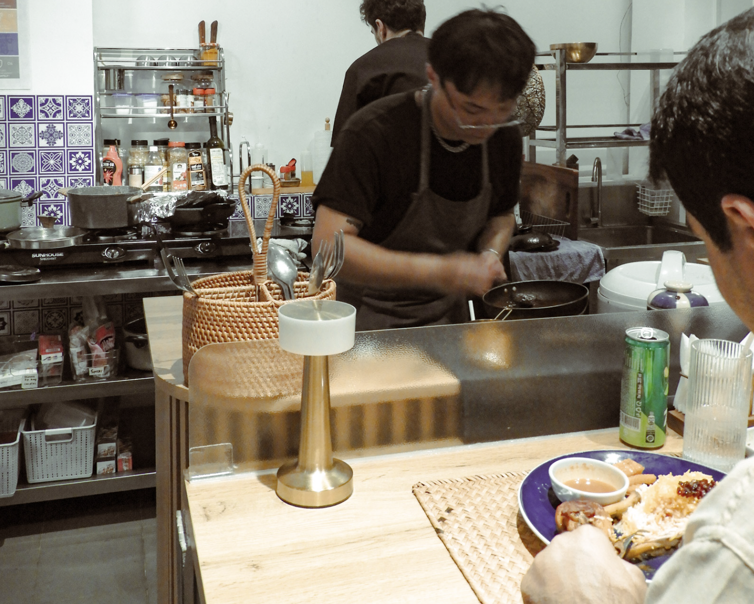 And just when you think it couldn’t get more charming—Saffran happens to be tucked away on the 2nd floor inside a flower shop, on a cozy little terrace overlooking the chaos of Quoc Huong Street in Thao Dien. Up here, it feels like you’ve stumbled into someone’s home kitchen rather than a restaurant. You’re seated right in the thick of it—pots simmering, spices in the air—chatting with the chef on one side and fellow diners on the other. It’s intimate, unpretentious, and honestly, kind of magical.