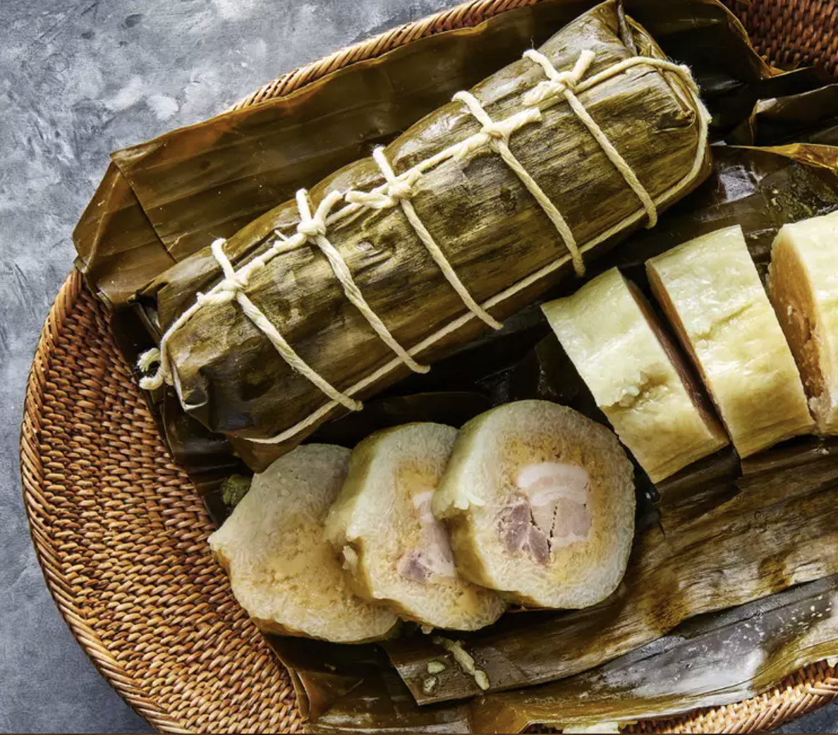 Bánh chưng: Sticky rice with mung beans and ground pork
