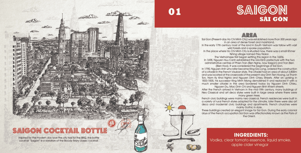 The book features 50 cocktails marking 50 years of peace in Vietnam. Recipes are included and at the back of the book, you’ll also find an illustrated guide to bartender techniques.